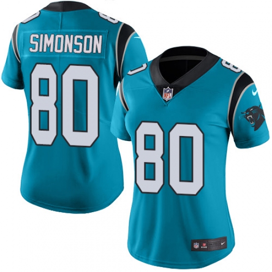 Women's Nike Carolina Panthers #80 Scott Simonson Blue Alternate Vapor Untouchable Limited Player NFL Jersey