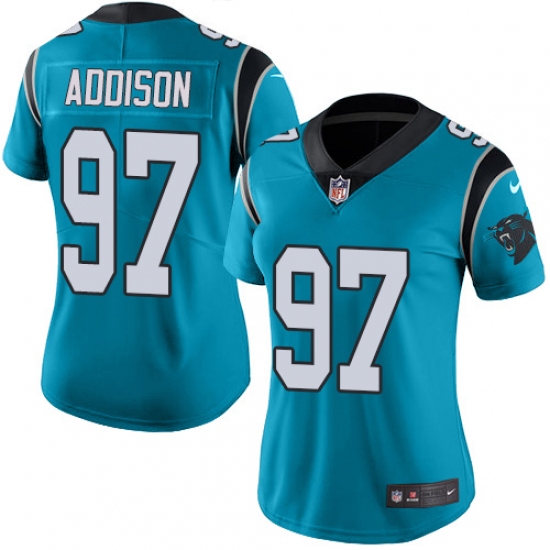 Home>NFL>Carolina Panthers>Mario Addison>Women's Nike Carolina Panthers #97 Mario Addison Blue Alternate Vapor Untouchable Limited Player NFL Jersey