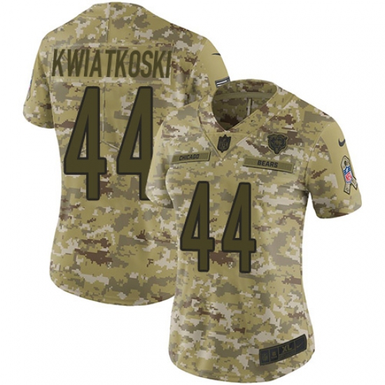 >Women's Nike Chicago Bears #44 Nick Kwiatkoski Limited Camo 2018 Salute to Service NFL Jersey