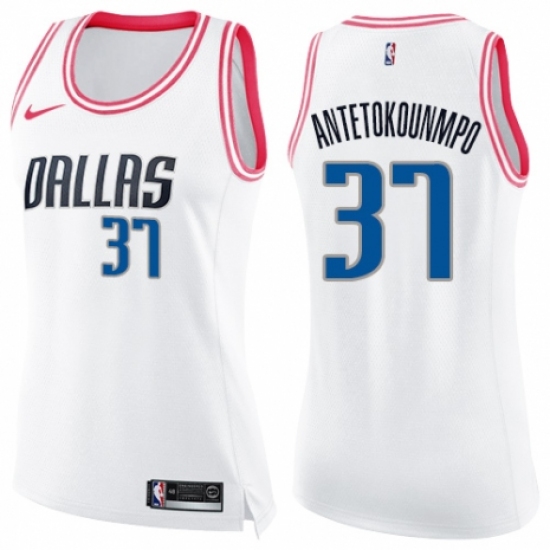 >Women's Nike Dallas Mavericks #37 Kostas Antetokounmpo Swingman White/Pink Fashion NBA Jersey