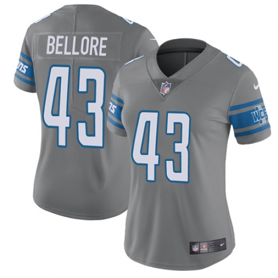 Home>NFL>Detroit Lions>Nick Bellore>Women's Nike Detroit Lions #43 Nick Bellore Limited Steel Rush Vapor Untouchable NFL Jersey