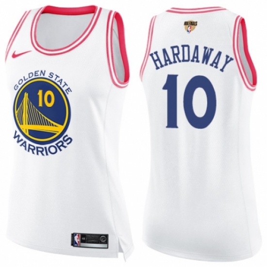 Women's Nike Golden State Warriors #10 Tim Hardaway Swingman White/Pink Fashion 2018 NBA Finals Bound NBA Jersey