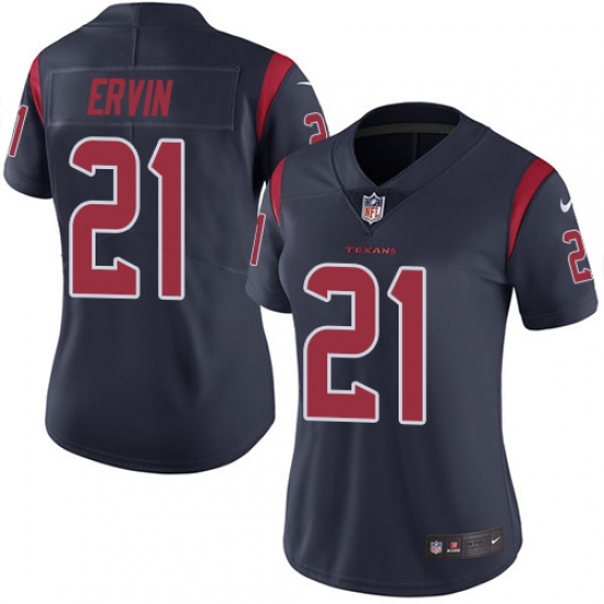 >Women's Nike Houston Texans #21 Tyler Ervin Limited Navy Blue Rush Vapor Untouchable NFL Jersey