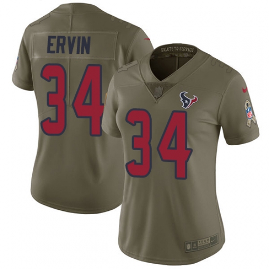 Home>NFL>Houston Texans>Tyler Ervin>Women's Nike Houston Texans #34 Tyler Ervin Limited Olive 2017 Salute to Service NFL Jersey