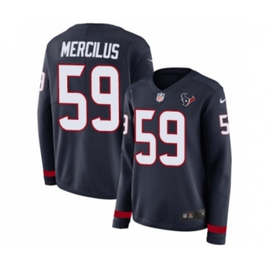 >Women's Nike Houston Texans #59 Whitney Mercilus Limited Navy Blue Therma Long Sleeve NFL Jersey