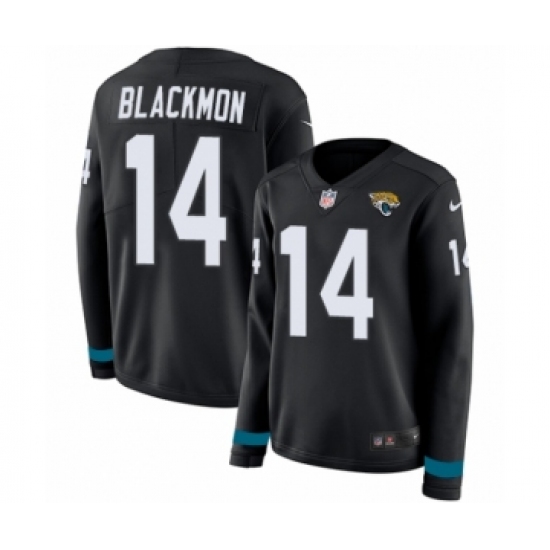 >Women's Nike Jacksonville Jaguars #14 Justin Blackmon Limited Black Therma Long Sleeve NFL Jersey