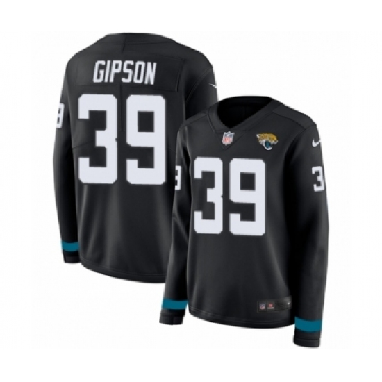 >Women's Nike Jacksonville Jaguars #39 Tashaun Gipson Limited Black Therma Long Sleeve NFL Jersey