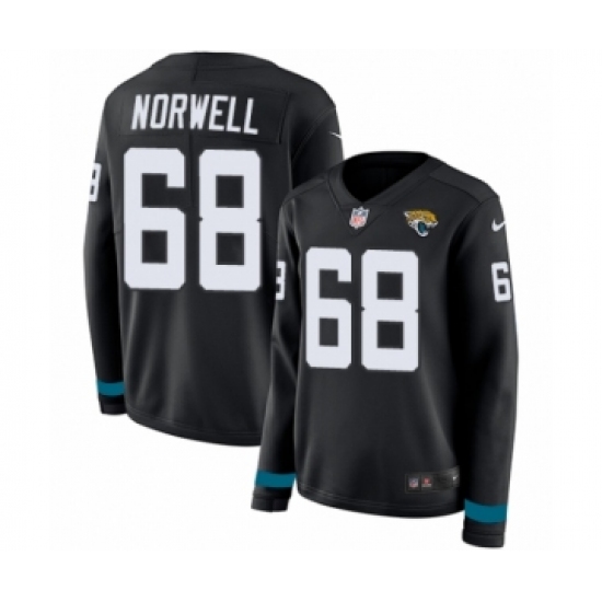 >Women's Nike Jacksonville Jaguars #68 Andrew Norwell Limited Black Therma Long Sleeve NFL Jersey