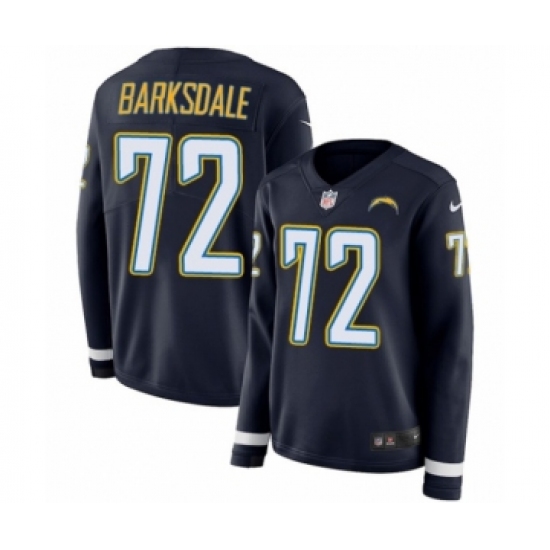 Women's Nike Los Angeles Chargers #72 Joe Barksdale Limited Navy Blue Therma Long Sleeve NFL Jersey