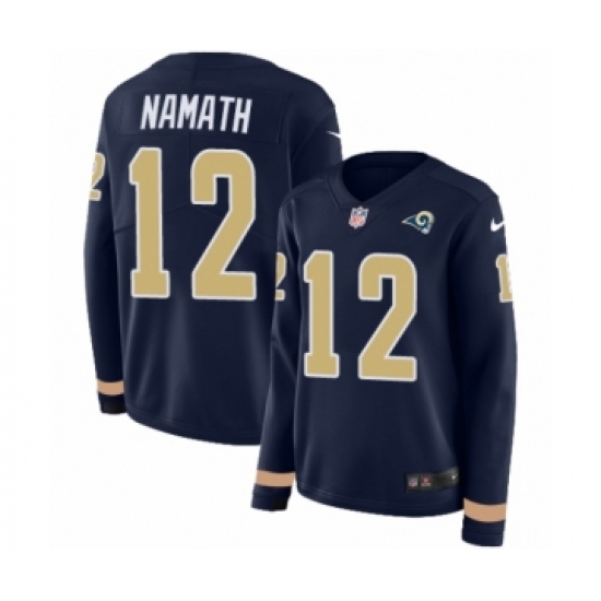 Women's Nike Los Angeles Rams #12 Joe Namath Limited Navy Blue Therma Long Sleeve NFL Jersey