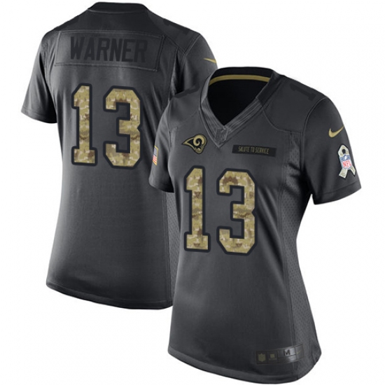 Home>NFL>Los Angeles Rams>Kurt Warner>Women's Nike Los Angeles Rams #13 Kurt Warner Limited Black 2016 Salute to Service NFL Jersey
