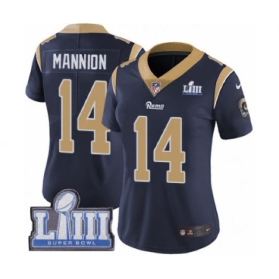 >Women's Nike Los Angeles Rams #14 Sean Mannion Navy Blue Team Color Vapor Untouchable Limited Player Super Bowl LIII Bound NFL Jersey