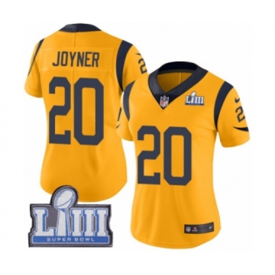 >Women's Nike Los Angeles Rams #20 Lamarcus Joyner Limited Gold Rush Vapor Untouchable Super Bowl LIII Bound NFL Jersey