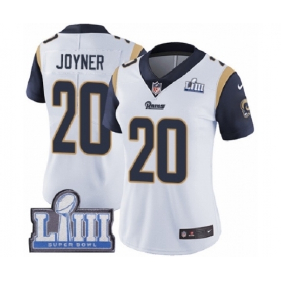 Women's Nike Los Angeles Rams #20 Lamarcus Joyner White Vapor Untouchable Limited Player Super Bowl LIII Bound NFL Jersey