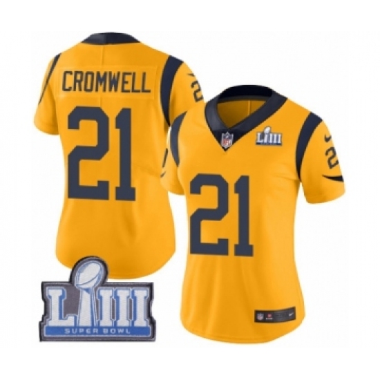 >Women's Nike Los Angeles Rams #21 Nolan Cromwell Limited Gold Rush Vapor Untouchable Super Bowl LIII Bound NFL Jersey
