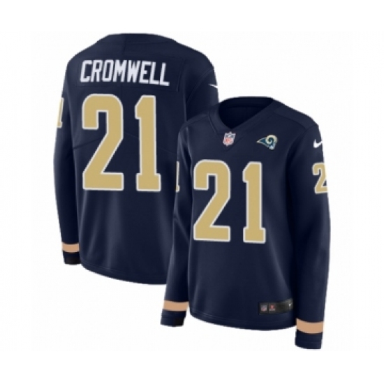 >Women's Nike Los Angeles Rams #21 Nolan Cromwell Limited Navy Blue Therma Long Sleeve NFL Jersey