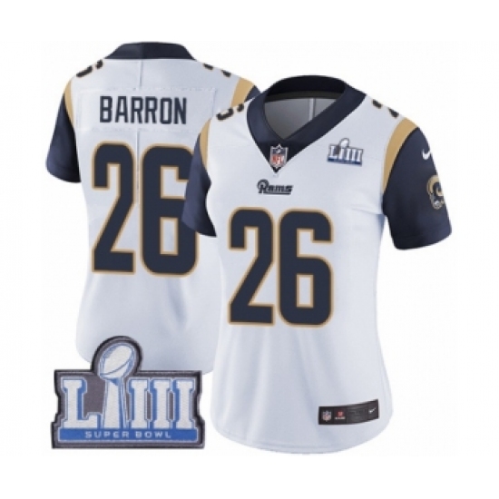 >Women's Nike Los Angeles Rams #26 Mark Barron White Vapor Untouchable Limited Player Super Bowl LIII Bound NFL Jersey