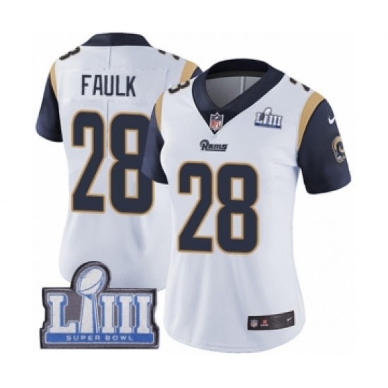 Women's Nike Los Angeles Rams #28 Marshall Faulk White Vapor Untouchable Limited Player Super Bowl LIII Bound NFL Jersey