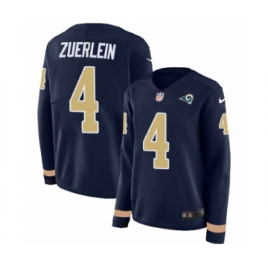Women's Nike Los Angeles Rams #4 Greg Zuerlein Limited Navy Blue Therma Long Sleeve NFL Jersey