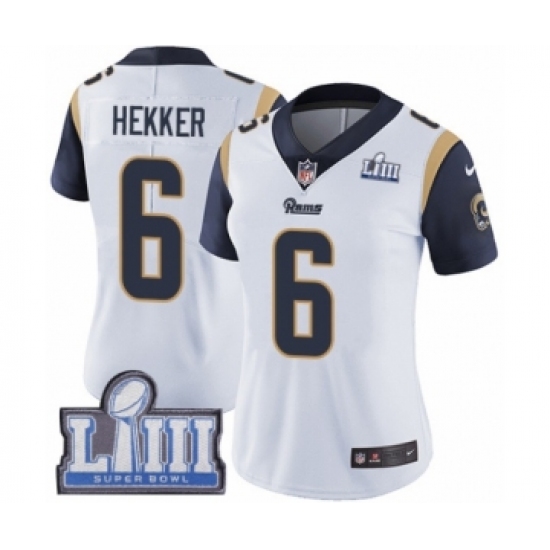 Women's Nike Los Angeles Rams #6 Johnny Hekker White Vapor Untouchable Limited Player Super Bowl LIII Bound NFL Jersey