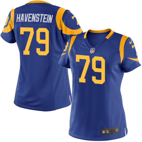 Home>NFL>Los Angeles Rams>Rob Havenstein>Women's Nike Los Angeles Rams #79 Rob Havenstein Game Royal Blue Alternate NFL Jersey