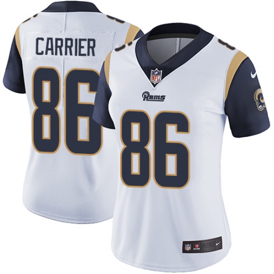 Women's Nike Los Angeles Rams #86 Derek Carrier White Vapor Untouchable Elite Player NFL Jersey