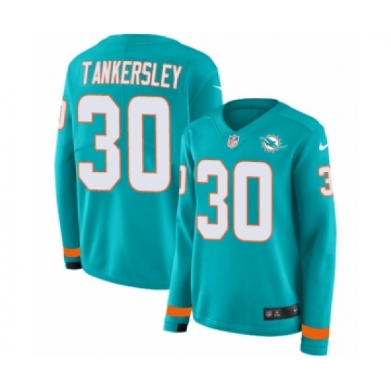 >Women's Nike Miami Dolphins #30 Cordrea Tankersley Limited Aqua Therma Long Sleeve NFL Jersey