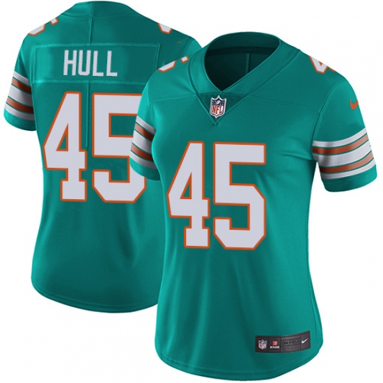 Home>NFL>Miami Dolphins>Mike Hull>Women's Nike Miami Dolphins #45 Mike Hull Aqua Green Alternate Vapor Untouchable Limited Player NFL Jersey