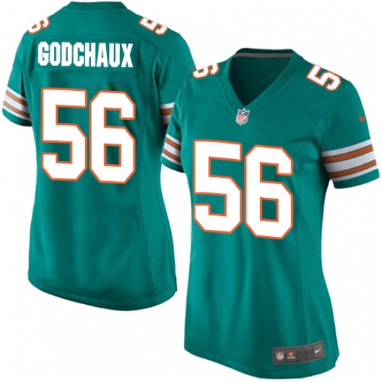 Women's Nike Miami Dolphins #56 Davon Godchaux Game Aqua Green Alternate NFL Jersey