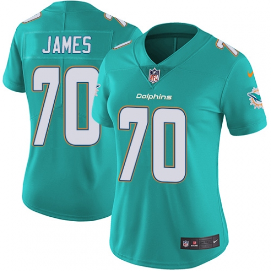 Home>NFL>Miami Dolphins>Ja'Wuan James>Women's Nike Miami Dolphins #70 Ja'Wuan James Aqua Green Team Color Vapor Untouchable Limited Player NFL Jersey
