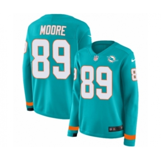 Women's Nike Miami Dolphins #89 Nat Moore Limited Aqua Therma Long Sleeve NFL Jersey
