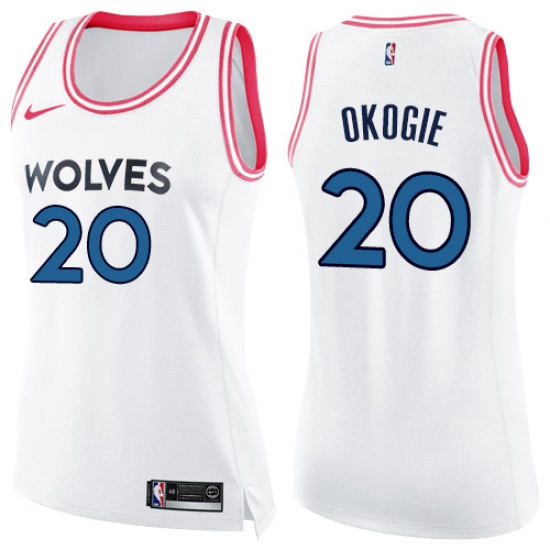>Women's Nike Minnesota Timberwolves #20 Josh Okogie Swingman White Pink Fashion NBA Jersey