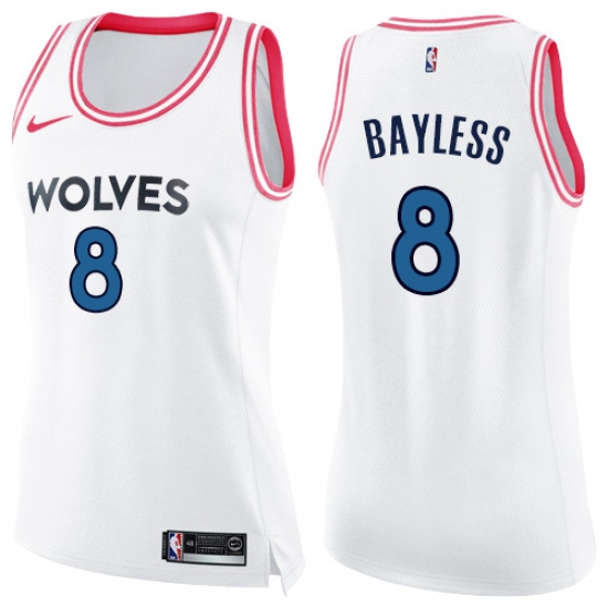 Women's Nike Minnesota Timberwolves #8 Jerryd Bayless Swingman White Pink Fashion NBA Jersey