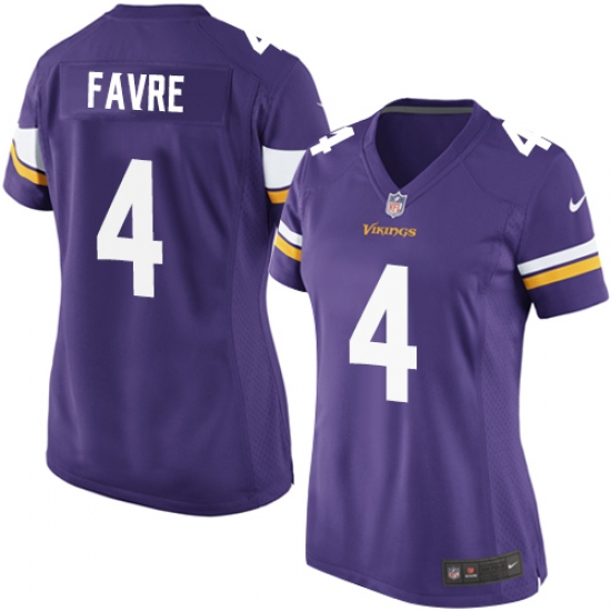 Women's Nike Minnesota Vikings #4 Brett Favre Game Purple Team Color NFL Jersey