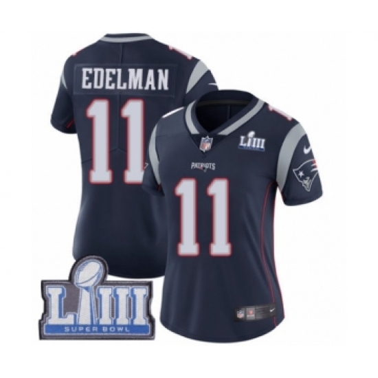 Women's Nike New England Patriots #11 Julian Edelman Navy Blue Team Color Vapor Untouchable Limited Player Super Bowl LIII Bound NFL Jersey