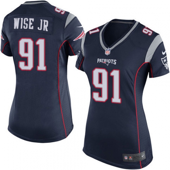 Home>NFL>New England Patriots>Deatrich Wise Jr>Women's Nike New England Patriots #91 Deatrich Wise Jr Game Navy Blue Team Color NFL Jersey