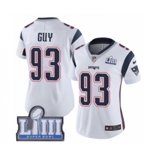 Women's Nike New England Patriots #93 Lawrence Guy White Vapor Untouchable Limited Player Super Bowl LIII Bound NFL Jersey