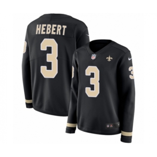 >Women's Nike New Orleans Saints #3 Bobby Hebert Limited Black Therma Long Sleeve NFL Jersey