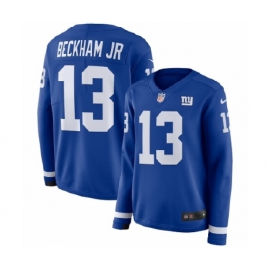 >Women's Nike New York Giants #13 Odell Beckham Jr Limited Royal Blue Therma Long Sleeve NFL Jersey