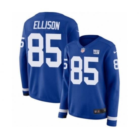 >Women's Nike New York Giants #85 Rhett Ellison Limited Royal Blue Therma Long Sleeve NFL Jersey