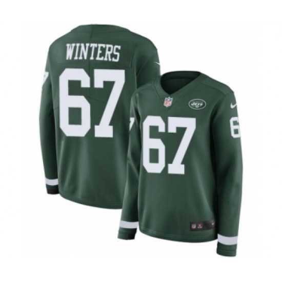 >Women's Nike New York Jets #67 Brian Winters Limited Green Therma Long Sleeve NFL Jersey