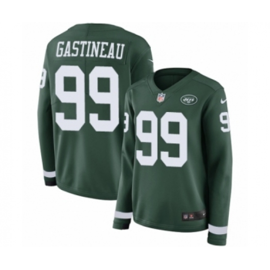 >Women's Nike New York Jets #99 Mark Gastineau Limited Green Therma Long Sleeve NFL Jersey
