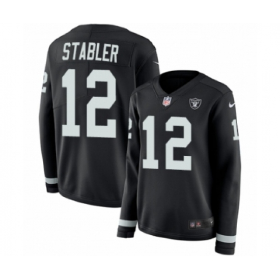 >Women's Nike Oakland Raiders #12 Kenny Stabler Limited Black Therma Long Sleeve NFL Jersey