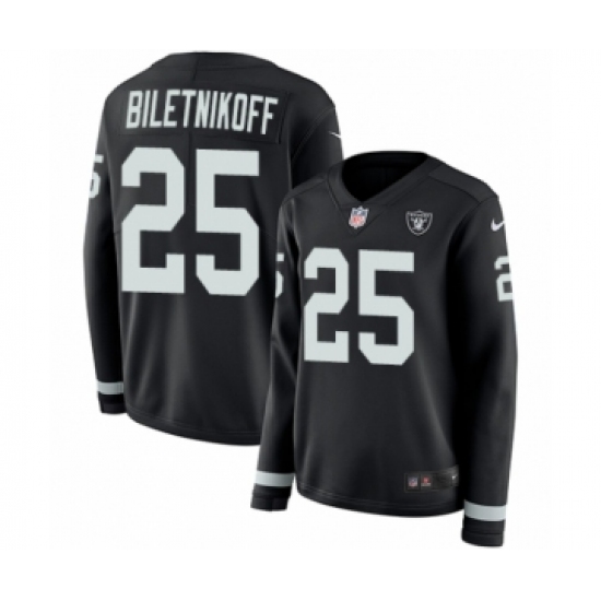 >Women's Nike Oakland Raiders #25 Fred Biletnikoff Limited Black Therma Long Sleeve NFL Jersey