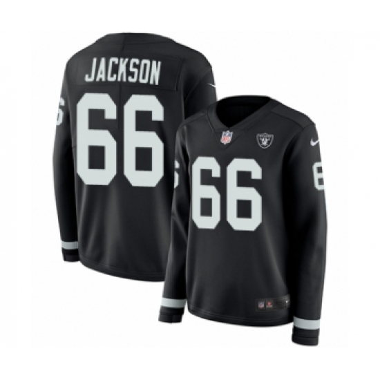 >Women's Nike Oakland Raiders #66 Gabe Jackson Limited Black Therma Long Sleeve NFL Jersey