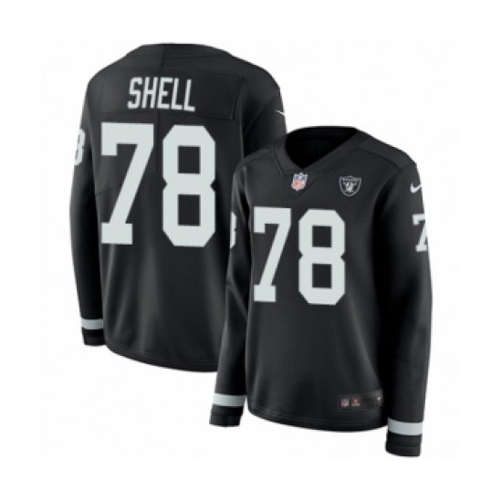 >Women's Nike Oakland Raiders #78 Art Shell Limited Black Therma Long Sleeve NFL Jersey