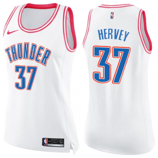 Women's Nike Oklahoma City Thunder #37 Kevin Hervey Swingman White Pink Fashion NBA Jersey