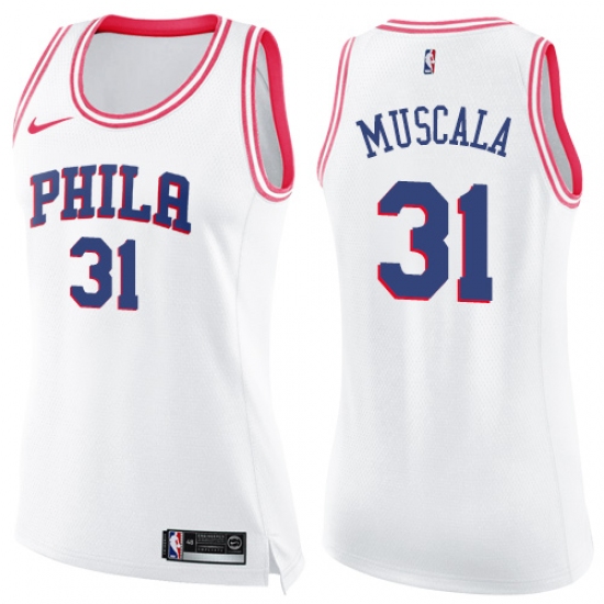 >Women's Nike Philadelphia 76ers #31 Mike Muscala Swingman White Pink Fashion NBA Jersey
