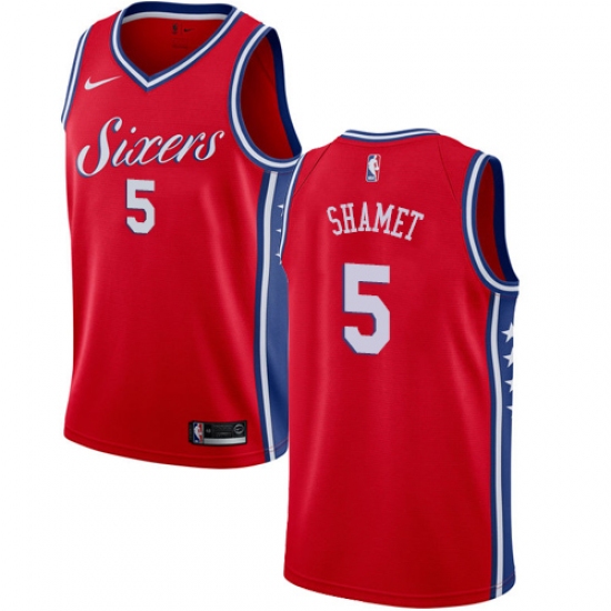 Men's Nike Philadelphia 76ers #5 Landry Shamet Swingman Red NBA Jersey Statement Edition