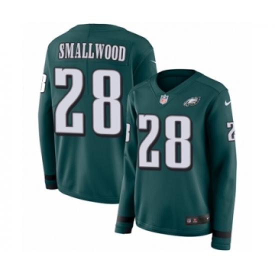 Women's Nike Philadelphia Eagles #28 Wendell Smallwood Limited Green Therma Long Sleeve NFL Jersey